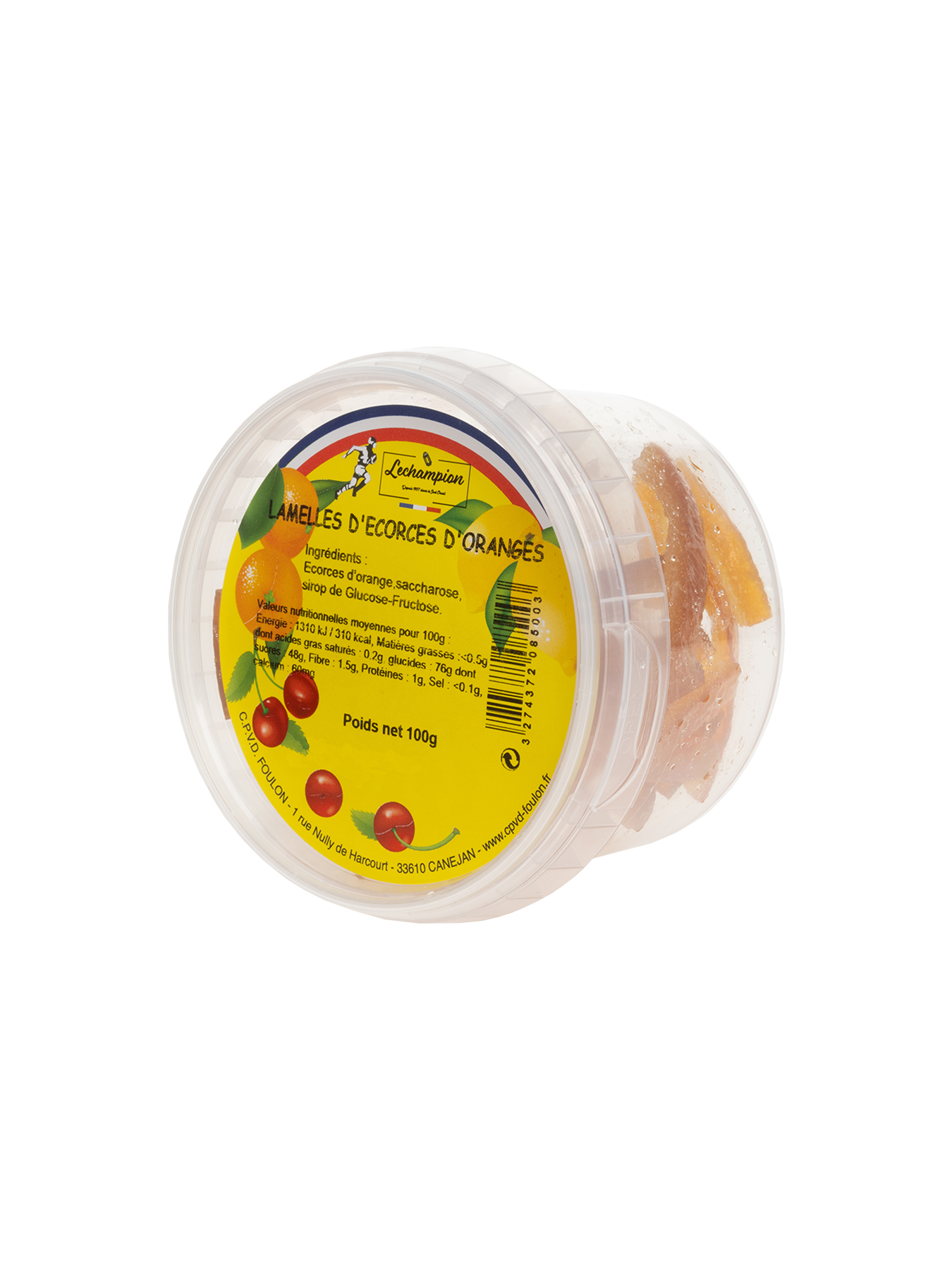 Aiguillettes d’Oranges confites (100g) disponible dès maintenant sur le site internet et en boutique CPVD Foulon produits Lechampion.