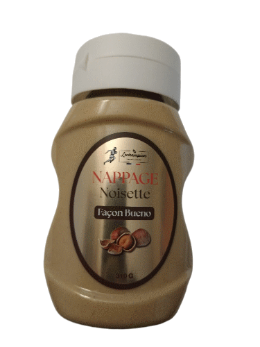 Sucre, huiles et huiles végétales(tournesol, palme), LAIT ECREME EN POUDRE, NOISETTES, LACTOSERUM EN POUDRE, LACTOSE, émulsifiants (lécithine de soja E-322, E-492,E-471) et arômes.